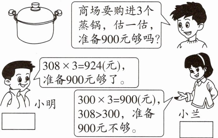 把196看成200 200×3=600(元),196<200,196×3<600 把121看成120 120×3=360(元) 把208看成200 200×3=600(元) 208>200,208×3>600