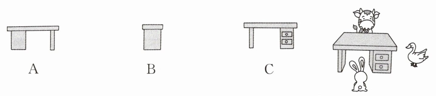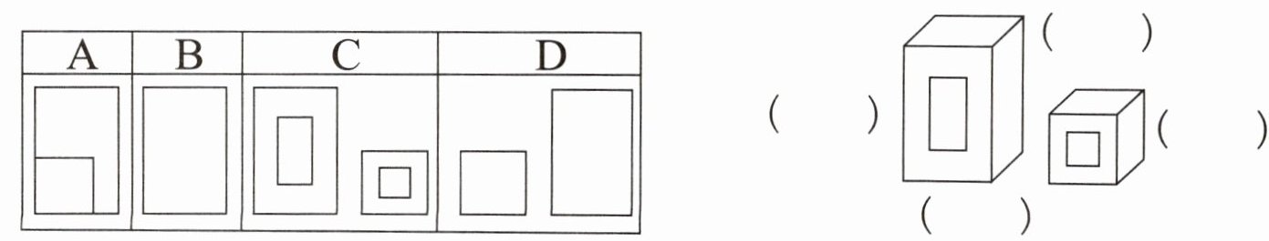 四、A、B、C、D 分别是在哪个位置看到的图?把序号填在括号里。