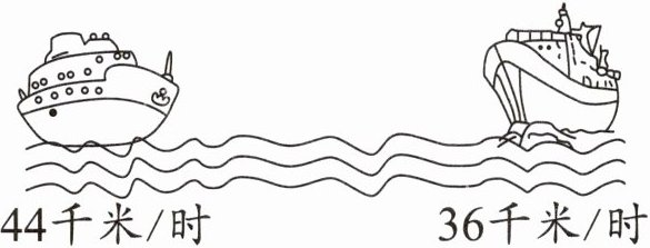 6. 两艘轮船分别同时从 A、B 两个港口沿同一航道相对开出,经过 6 小时的航行,两船还相距 3 千米。A、B 两个港口之间的航道长多少千米?