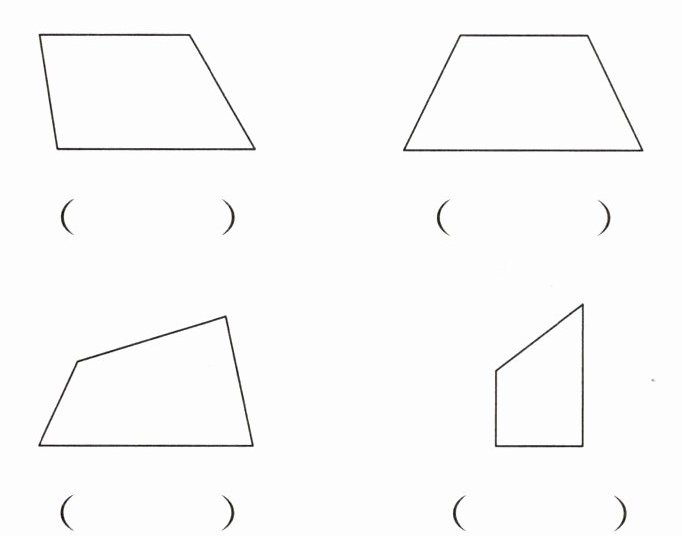 2. 在是梯形的图形下面画“√”,并画出每个梯形的高,分别标出它们的上底、下底和高。