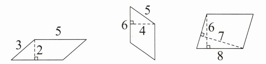 2. 写出下面平行四边形的底及与它相对应的高的长度。(单位:厘米)