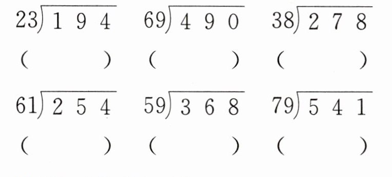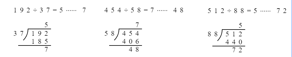 $\begin{array}{ll}192÷37= & 454÷58= \\512÷88= & *328÷36= \end{array} $