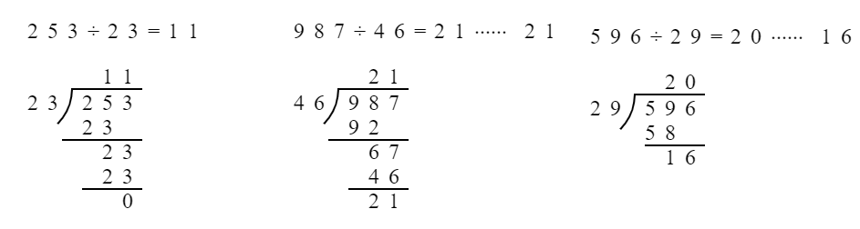 $253÷23= $ $987÷46= $