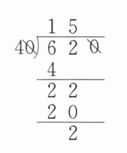1. 用竖式计算 $620÷40$,如右图,这道题的正确结果是(