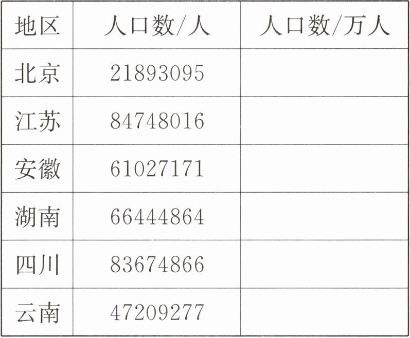 5. 下面是我国第七次全国人口普查中部分地区的人口数,省略万位后面的尾数求出近似数,并将人口数按从多到少的顺序排列。