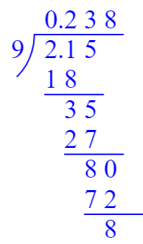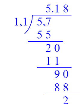 $5.7÷1.1= $ $2.15÷9= $