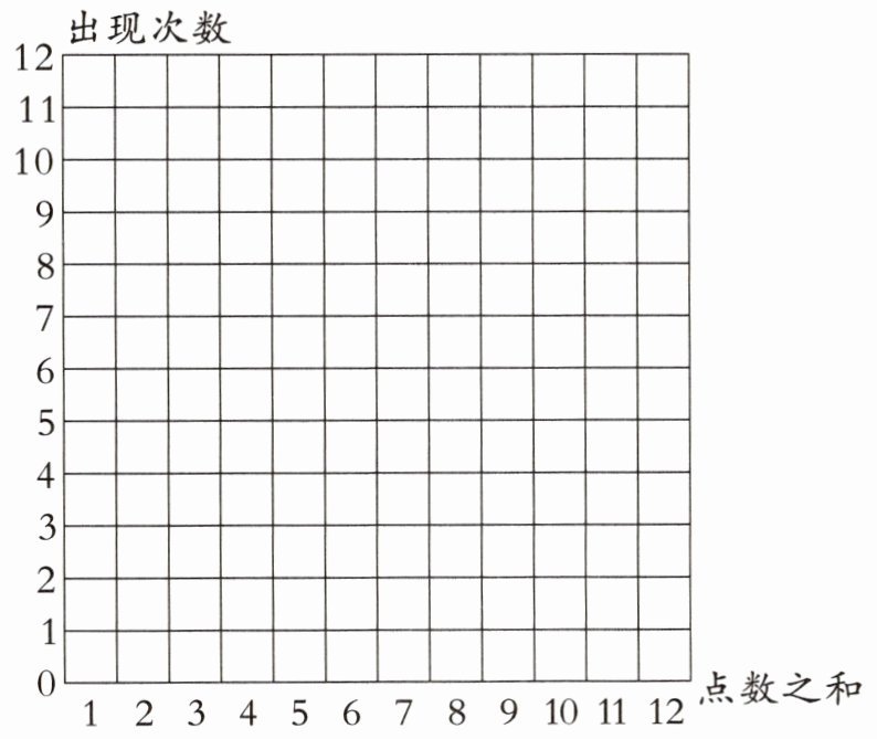 $2$出现$1$次,$3$出现$2$次,$4$出现$3$次,$5$出现$4$次,$6$出现$5$次,$7$出现$6$次,$8$出现$5$次,$9$出现$4$次,$10$出现$3$次,$11$出现$2$次,$12$出现$1$次。(根据统计结果绘制统计图即可)