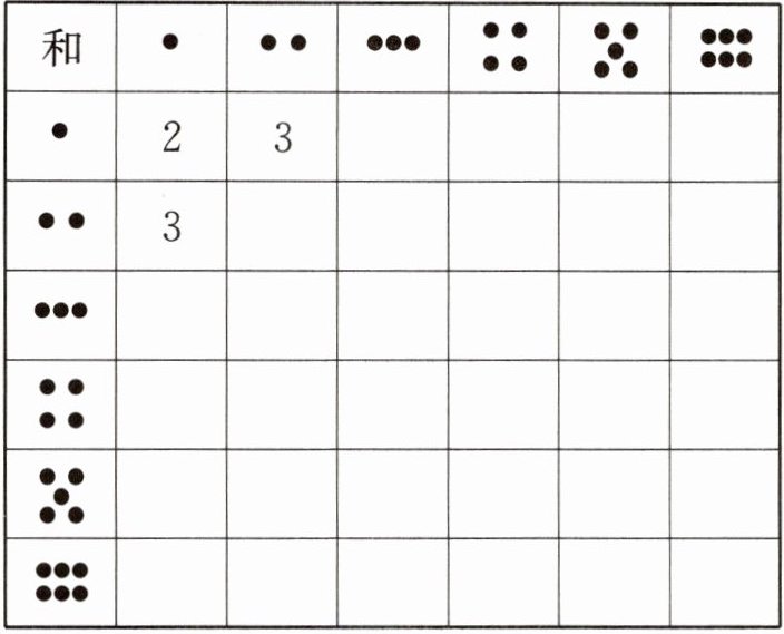 1. 同时掷出两枚骰子,将朝上的点数之和填入表格中。