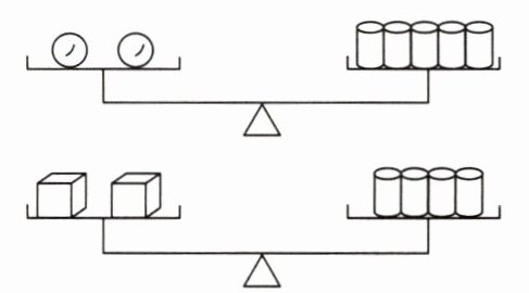 5. 如图,第一个天平的两侧分别放着2个球和5个圆柱,第二个天平的两侧分别放着2个正方体和4个圆柱,两个天平都平衡。12个球的质量等于多少个正方体的质量?