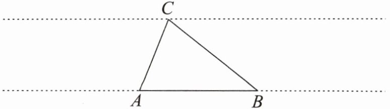 根据题中虚线平行这一条件,可画与三角形$ABC$等底($AB$长度)等高(两条虚线间距离)的三角形,如沿$AC$、$BC$方向延长作$\triangle ABD$($D$在$B$延长方向虚线上);或过$A$点作平行于$BC$的虚线交另一虚线于点$E$,连接$BE$、$CE$得$\triangle BEC$与$\triangle ABC$等底等高,面积相等。 (答案不唯一)