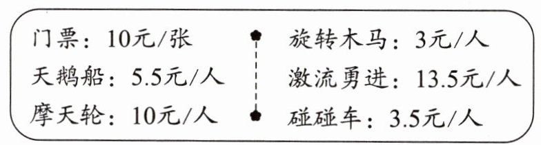 5. 吴老师准备了 1200 元,预计周日带领全班 39 名学生去游乐园玩。请你算一算,他们可以一起玩哪些项目?