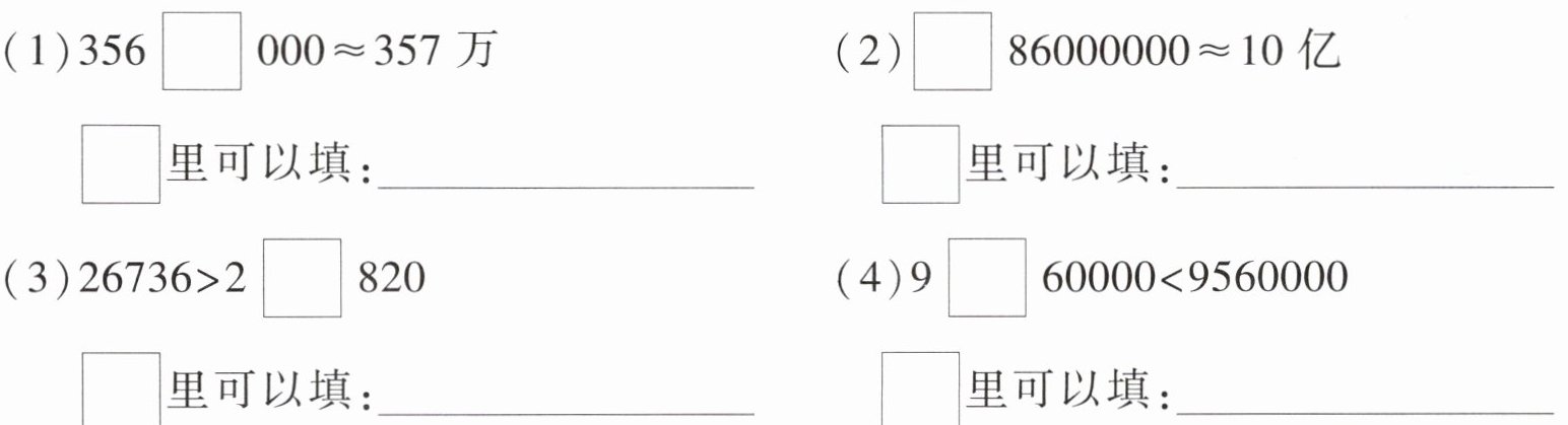 (1) 152□603≈152万,□里能填的所有数字是( )。