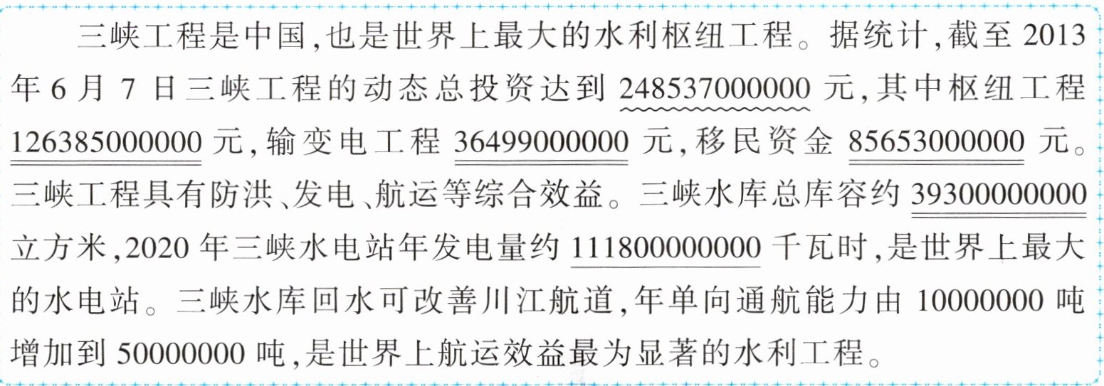 2. (新素材)三峡水电站初期的规划是安装 26 台单机容量为 70 万千瓦的机组,年发电量约为 840 亿千瓦时。(提示:单机容量是指一台机组的容量)根据以上信息回答下面问题。