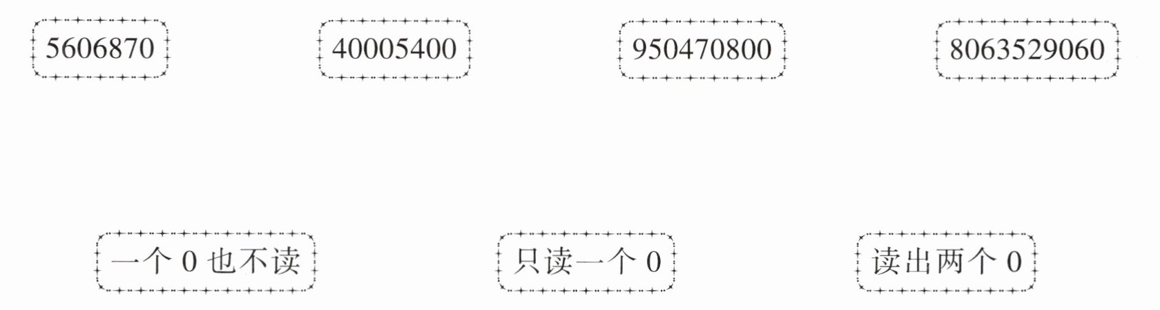 (1) 下面各数中,1 个 0 也不读的是( ),只读 1 个 0 的是( )。