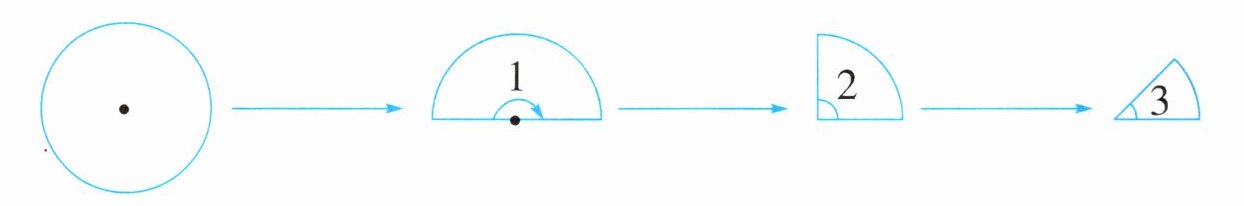 3. 如图,把一张圆形纸对折三次,请写出下面得到的角的度数。