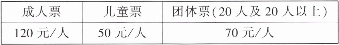 (2)门票价格如下。如果 $10$ 位爸爸带 $10$ 位儿童前往游览,怎样买门票合算?