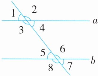 5. 如图,a 和 b 是两条互相平行的直线,请你在图中找出和 $ ∠1 $ 相等的角。