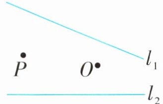 三、过点 $ P $ 画直线 $ l_{1} $ 的垂线,过点 $ O $ 画直线 $ l_{2} $ 的平行线。