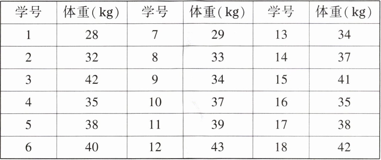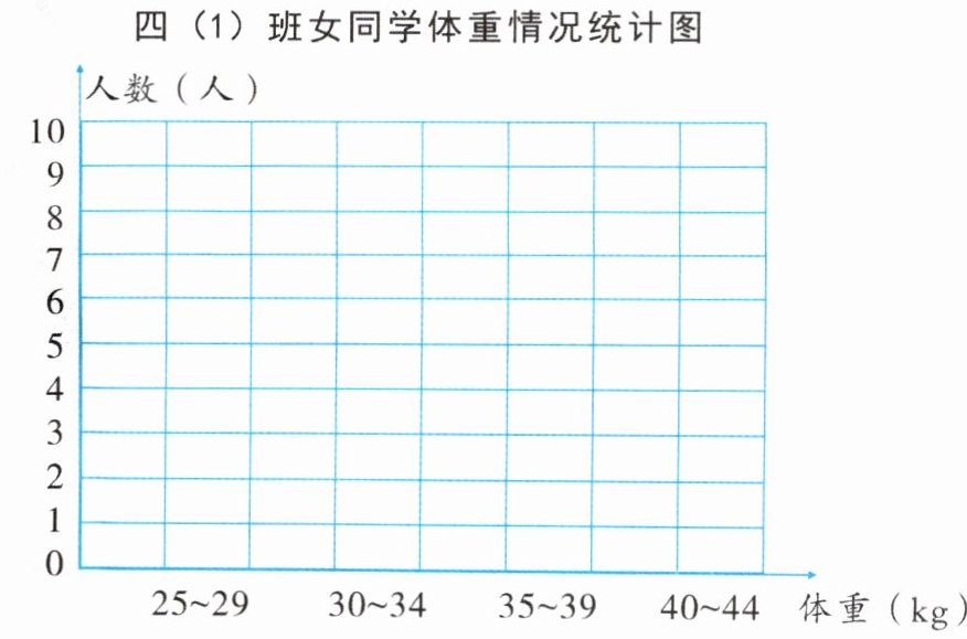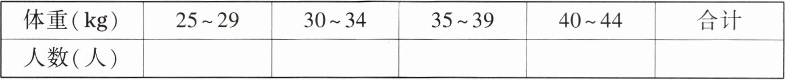 (2)体重在35~39kg之间的人数最多,在25~29kg之间的人数最少。