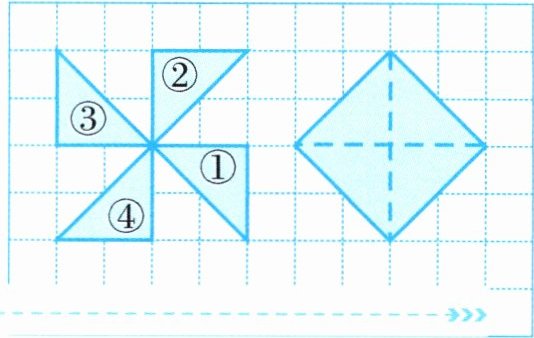 3. 怎样平移左边的风车里的三角形可得到右边的正方形?(在正方形上标出相应图形的序号)