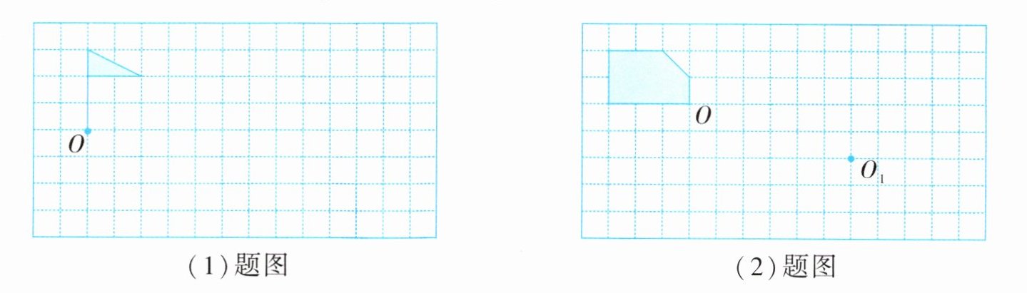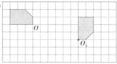 (2) 将五边形平移使顶点 O 到点 $ O_1 $ 处,再绕点 $ O_1 $ 沿顺时针方向旋转 $ 90° $。