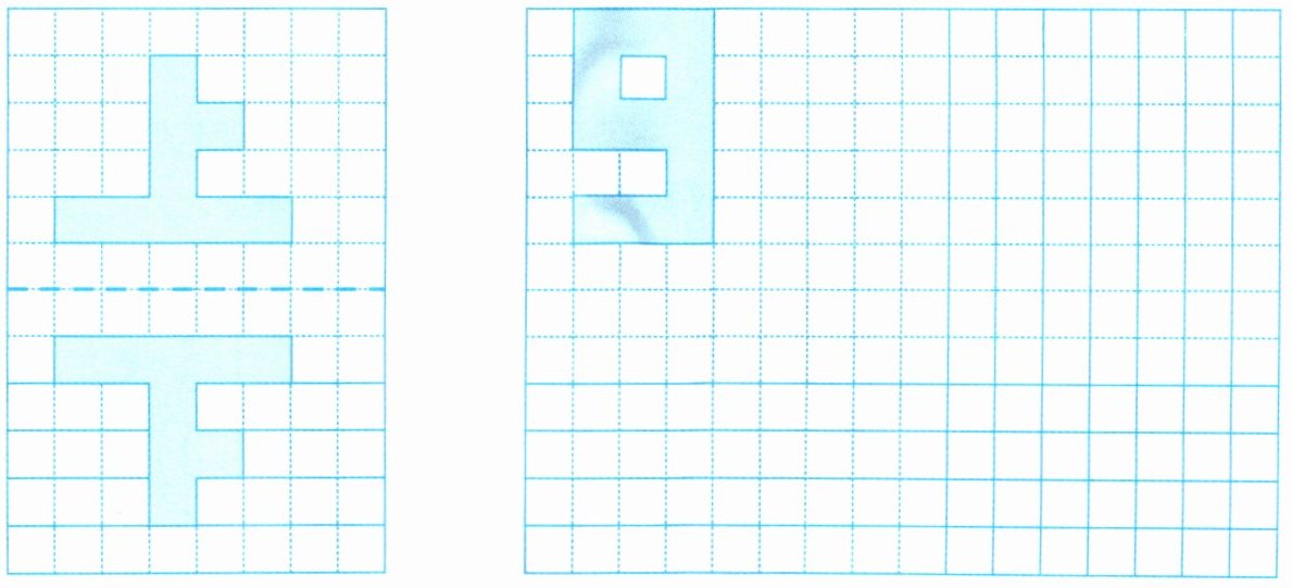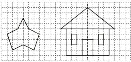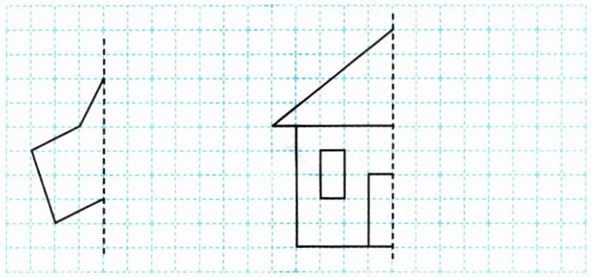 2. 画出图形的另一半,使它们都成为轴对称图形。