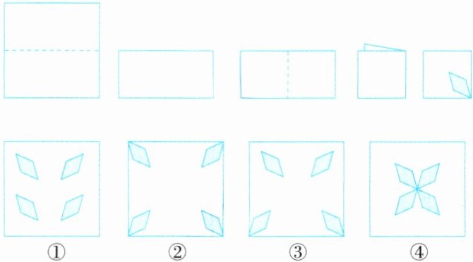 2. 像下面这样把一张正方形纸对折两次,剪出如图所示的小洞后展开,得到的图案是(