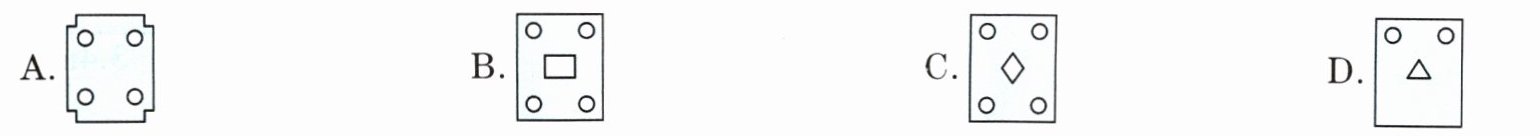 3. 一张长方形纸先上下对折,再左右对折后剪下一个圆和一个三角形(如右图),展开后是图(