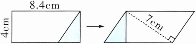 3. 毛毛把一张长 8.4cm、宽 4cm 的长方形进行剪拼后变成一个平行四边形(如图)。这个平行四边形的一条高为 7cm,这个平行四边形的周长是多少厘米?