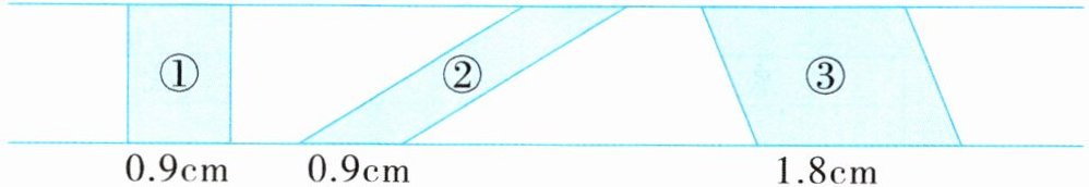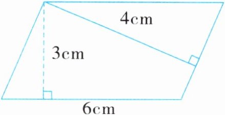 5. 已知平行四边形的一条底的长和两条高的长(如图), 如果用铁丝围成这样一个平行四边形,它的面积是多少平方厘米? 至少要用多长的铁丝?