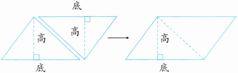 )三角形的高,三角形的面积是拼成的平行四边形面积的(一半
