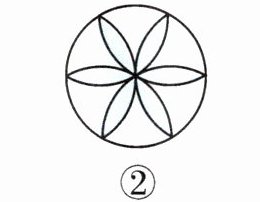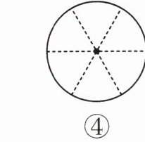 5. 在③④两个图中用圆规分别绘出①②图中的两个美丽的图案。