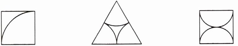 提示:③分别以正方形四个顶点为圆心,边长为半径画出落在正方形内部的部分,找到对应的4块阴影部分涂色。④分别以圆上6个点为圆心,圆的半径为半径画出落在圆内的部分,找到对应的6块阴影部分涂色。