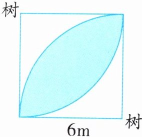 4. 有一块正方形草地(如图),两对角各有一棵树,琪琪的爷爷在两棵树上各栓了一头牛,绳子的长都是6m。请问:两头牛都能吃到的草的面积是多少平方米?