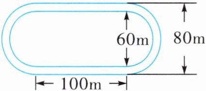 2. 如图所示,运动场的两端是半圆形,小刚沿着运动场的内环跑一圈,小南沿着运动场的外环跑一圈,小南比小刚多跑了多少米?