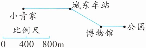4. (新情境)下面是乐乐去外婆家的路线图。当地的出租车在3km以内(含3km)按起步价12元收费,以后每增加1km车费就增加1.5元(不足1km按1km计算)。根据图中提供的信息,量一量,算一算,乐乐一共要付多少元车费?