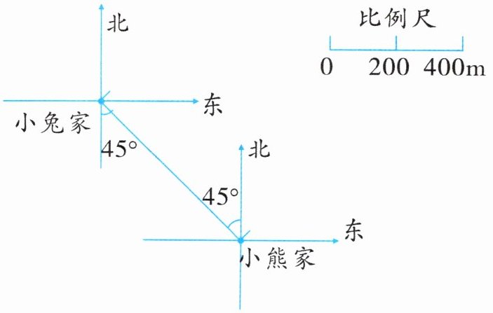 (2)小熊家在小兔家的南偏东45°方向;图上距离是3cm,