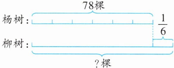 2. 杨树有78棵, 柳树比杨树多$\frac{1}{6}$, 柳树有多少棵?