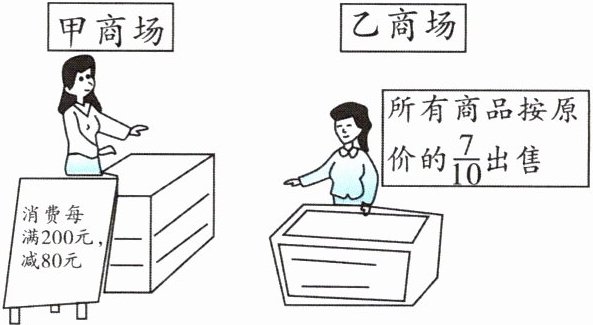 3. 国庆期间,甲、乙两个商场推出商品促销活动。王阿姨想买一件原价 200 元的上衣和一条原价 80 元的裤子,去哪个商场买比较合算?