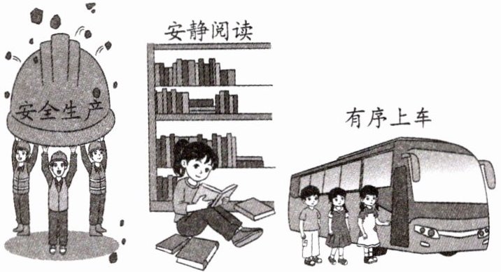 1.B 解析:本题考查社会规则的作用、自觉遵守社会规则。图片中工人安全生产、在图书馆安静阅读、乘坐公交车有序上车,体现了社会规则保障社会秩序的实现,公民要自觉遵守社会规则,①④符合题意;社会规则包括道德、纪律、法律等,违反法律要受到法律制裁,②说法错误;"就能"夸大了规则的作用,③说法错误。故选B项。
