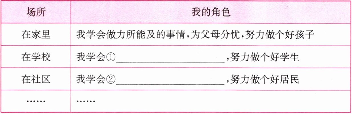(2) 请根据上表内容,说说扮演好这些社会角色对我们的成长有哪些帮助。
