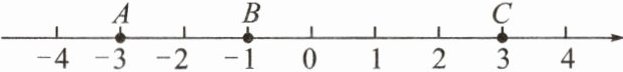 5. 如图,在数轴上有 $ A $,$ B $,$ C $ 三点.请回答: