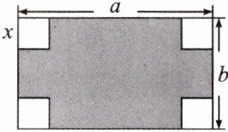 2. 如图,某长方形广场的四角都有一块边长为 $ x $ 米的正方形草地,若长方形广场的长为 $ a $ 米,宽为 $ b $ 米.