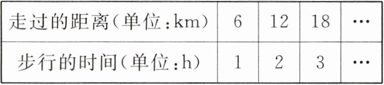 (1)解:小明步行的速度是 6km/h;(2)走过的距离 y 随步行的时间 x 的增大而增大;(3)走过的距离 y 与步行的时间 x 成正比例关系.