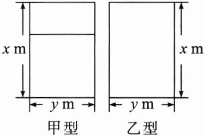 14. 两种长方形塑钢窗框如图所示,已知窗框的高都是$x\ m$,窗框的宽都是$y\ m$,若一用户装修房屋,需要甲型窗框$3$个,乙型窗框$2$个.