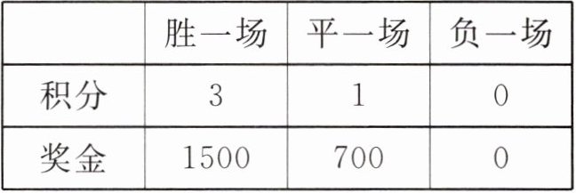 8. 某足球协会举办了一次足球赛,其记分规则及奖励方案(每人)如下表: