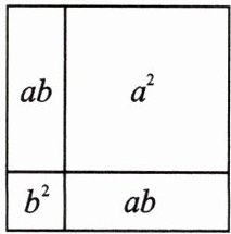11. (德阳市期末)如图是一个正方形,分成四部分,其面积分别是$a^{2}$,$ab$,$ab$,$b^{2}$,则原正方形的边长是(