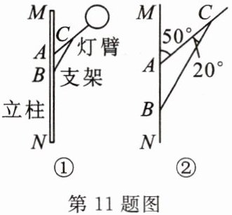 11.【新考法】图①是一路灯的实物图,图②是该路灯的平面示意图,则图②中∠CBN 的度数为(