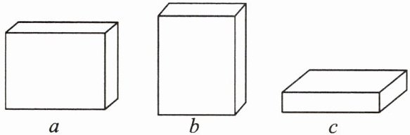 6. 如图,一块质地均匀的砖,以 $ a $、$ b $、$ c $ 三种方式放置在同一水平面上,其重心位置(