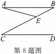 8. 如图,直线$AB// CD$,连接$BC$,点$E是BC$上一点,$\angle A = 15^{\circ}$,$\angle C = 27^{\circ}$,则$\angle AEC$的大小为(